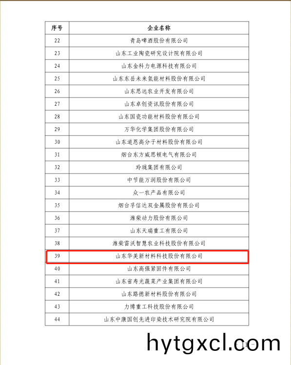 【概(gai)要描(miao)述】山(shan)东(dong)省市(shi)场(chang)监(jian)督(du)管(guan)理(li)局确定(ding)2023年(nian)度(du)标(biao)准(zhun)化创(chuang)新发展(zhan)计(ji)划项(xiang)目,潍坊市(shi)仅(jin)六(liu)家,山(shan)东华(hua)美华美(mei)新(xin)材(cai)料科(ke)技股(gu)份(fen)有限公(gong)司上(shang)榜(bang)